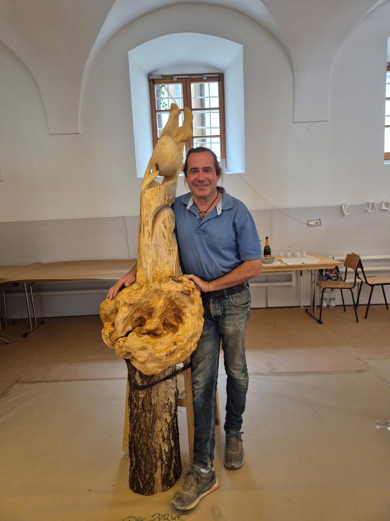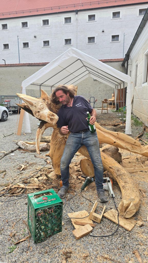 Ganz nach deren Motto: „Dies ist ein HolzbildHAUER-Kurs und kein HolzbildSÄGER-Kurs habe ich in zwei Wochen Akkordarbeit den Großteil mit Beitel und Klüpfel herausgearbeitet. Am Ende des Tages weiß man, was man gearbeitet hat.